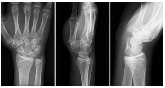 - Mancini, F.; De Maio, F.; Ippolito, E. Pisiform bone fracture-dislocation and distal radius physeal fracture in two children. J. Pediatr. Orthop. B 2005, 14, 303–306. [Google Scholar] [CrossRef]