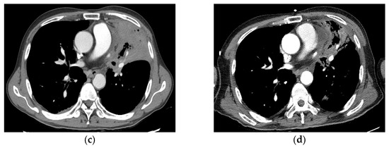 - Fukuda, Y.; Homma, T.; Uno, T.; Murata, Y.; Suzuki, S.; Shiozawa, E.; Takimoto, M.; Sagara, H. Fatal rupture of pulmonary artery pseudoaneurysm after thoracic radiation therapy against lung squamous cell carcinoma: A case report and literature review. Clin. Case Rep. 2021, 9, 737–741. [Google Scholar] [CrossRef]