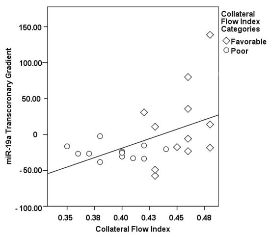 The correlation between the transcoronary gradient of miR-19a and the CFI.