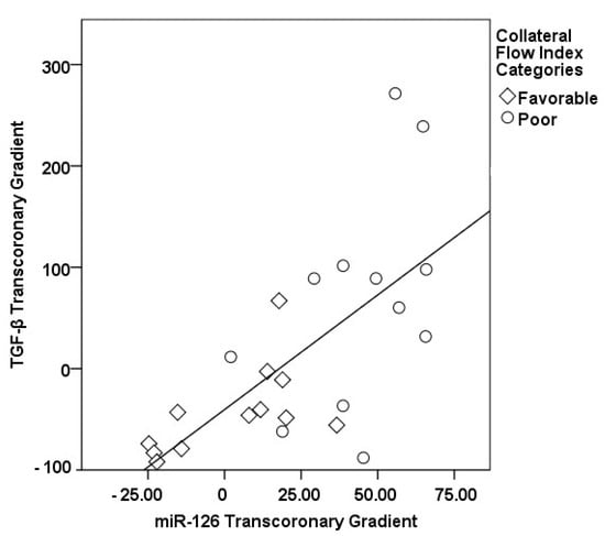 The correlation between the transcoronary gradients of miR-126 and TGF-β.