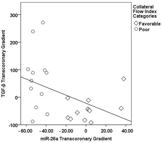 The correlation between the transcoronary gradients of miR-26a and TGF-β.