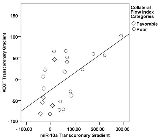The correlation between the transcoronary gradients of miR-10a and VEGF.