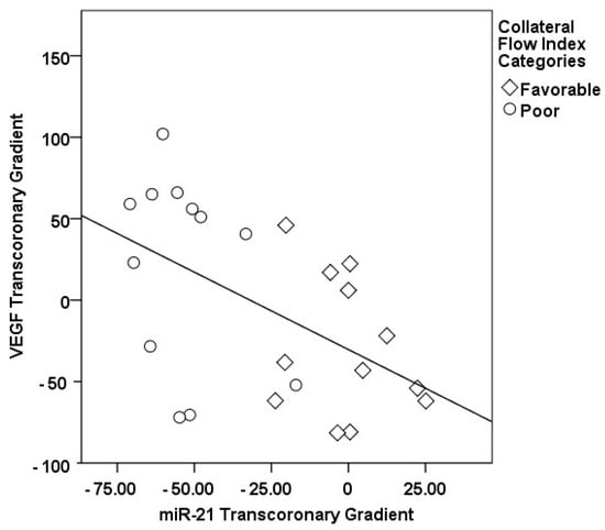 The correlation between the transcoronary gradients of miR-21 and VEGF.