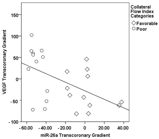 The correlation between the transcoronary gradients of miR-26 and VEGF.