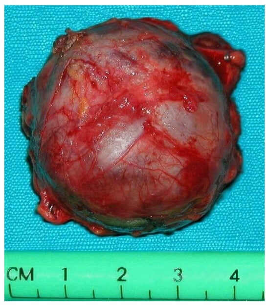 The mainstay of PPGL treatment is surgical removal. Surgical manipulation of the tumor leads to massive release of catecholamines (catecholamine storm) and has the potential to cause hypertensive crisis, cardiac arrhythmias, myocardial ischemia, pulmonary edema and stroke []. Current guidelines and retrospective studies support the initiation of preoperative antihypertensive therapy with selective (doxazosin, prazosin, terazosin) or nonselective (phenoxybenzamine) alpha adrenergic blockers in patients with symptoms of catecholamine excess []. Management of malignant PPGLs includes a combination of surgical debulking, medical management to control symptoms of catecholamine excess (metyrosine), radionuclide therapy (131I-MIBG or somatostatin analogues), chemotherapy (cyclophosphamide, vincristine, dacarbazine combination) and external beam radiation therapy []. In the 2017 WHO classification of endocrine tumors, all PPGLs were considered malignant neoplasms with varying metastatic potential, in the same way as epithelial neuroendocrine neoplasms, and this was maintained in the 2022 WHO classification [,]. The current TNM of staging patients with PPGL is challenging because it is impossible to differentiate between benign and malignant tumors. Nevertheless, TNM staging may help in the follow-up and treatment of patients with PPGL; therefore, this staging system should be based on the recognition of clinical predictors of metastases and survival in the context of metastatic disease [,]. In this retrospective study, we present our management of the disease from a surgical point of view, and we discuss the current evidence and recommendations for managing this potentially life-threatening condition.