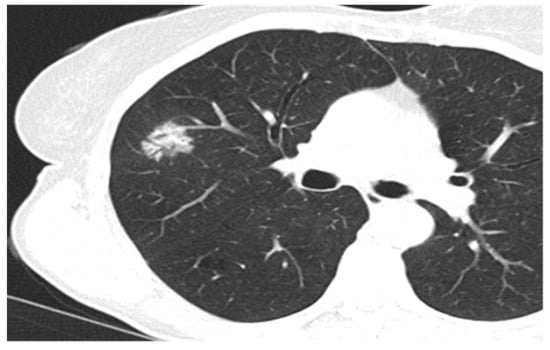 - Kuriyama, K.; Yanagawa, M. CT Diagnosis of Lung Adenocarcinoma: Radiologic-Pathologic Correlation and Growth Rate. Radiology 2020, 297, 199–200. [Google Scholar] [CrossRef] [PubMed]