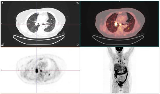 - Damirov, F.; Stoleriu, M.G.; Manapov, F.; Büsing, K.; Michels, J.D.; Preissler, G.; Hatz, R.A.; Hohenberger, P.; Roessner, E.D. Histology of the Primary Tumor Correlates with False Positivity of Integrated 18F-FDG-PET/CT Lymph Node Staging in Resectable Lung Cancer Patients. Diagnostics 2023, 13, 1893. [Google Scholar] [CrossRef] [PubMed]