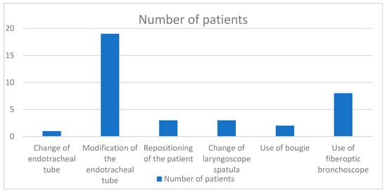 There was a need to use alternative intubation techniques in 30 patients out of which 26 (88.66%) were difficult to intubate, according to the IDS. Details about the types of alternative techniques used are provided in Figure 1, with reference to two or more techniques used in several patients.