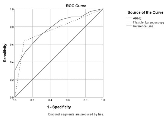 With the development of medical engineering, there is an emerging trend to use modern means of visualization and diagnostics [,,,]. The expert consensus on difficult airway assessment recommended in 2023 that transnasal endoscopy can be used for preoperative assessment of patients with periglottic lesions or abnormal airway structures []. Since laryngeal pathology is very specific, we have tested the accuracy of a combination of flexible laryngoscopy with the ARNE score.