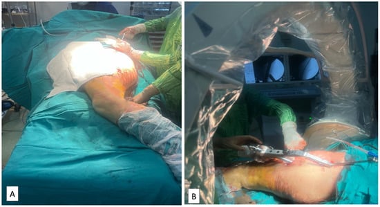 The significant advantages of surgery performed in the lateral decubitus position include its ability to facilitate easy access to the starting point, particularly in obese patients, and its applicability on universally used surgical tables. Additionally, during open surgery, it is more feasible to mitigate the effects of muscles that exacerbate deformity and facilitate fracture reduction. However, notable disadvantages include the requirement for more than one assistant, difficulties in imaging, and the inability to compare rotation with the other leg [].