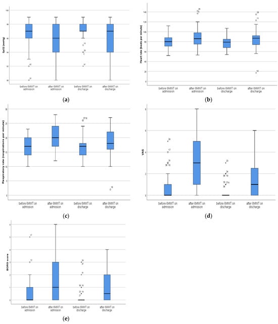 | Tested Variables M (25–75% IQR) | Admission | Discharge | ||||