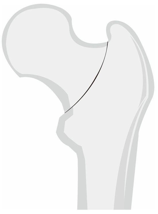 - Mallick, A.; Parker, M.J. Basal fractures of the femoral neck: Intra- or extra-capsular. Injury 2004, 35, 989–993. [Google Scholar] [CrossRef]