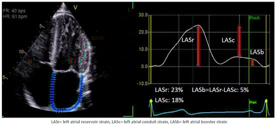 - Singh, A.; Addetia, K.; Maffessanti, F.; Mor-Avi, V.; Lang, R.M. LA Strain for Categorization of LV Diastolic Dysfunction. JACC Cardiovasc. Imaging 2017, 10, 735–743. [Google Scholar] [CrossRef] [PubMed]
