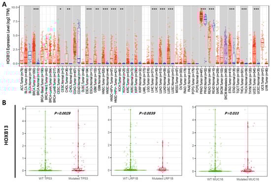 3.1. Assessment of HOXB13 Expression in Different Cancer and Normal Tissues