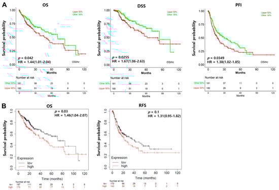 3.2. Prognostic Value of HOXB13 mRNA Expression in LIHC