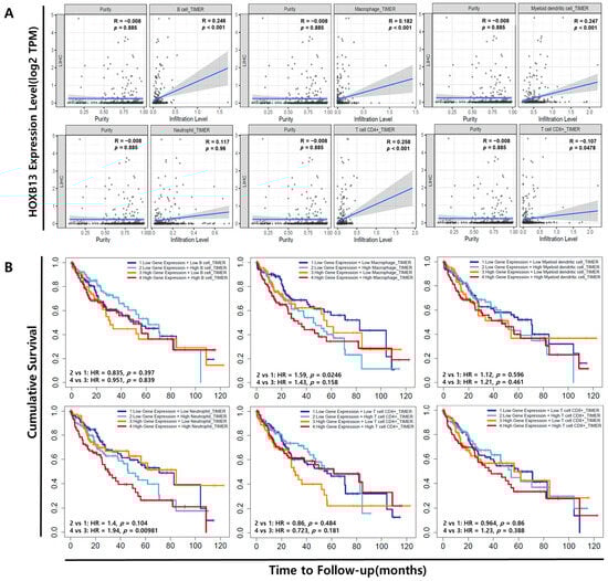 3.4. Association of HOXB13 Expression with Immune Cell Infiltration in LIHC