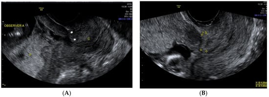 The placental site was evaluated with a transabdominal probe. The women were asked to have their bladder filled normally during the ultrasound examination. In cases where the transabdominal ultrasound indicated a low-lying placenta, a transvaginal scan was applied. Placental locations were recorded prospectively using high-anterior, high-posterior, low-anterior, and low-posterior subgroups. In cases when the placenta was “left- or right-anterior”, it was classified as “anterior”, and similarly, “right- or left-posterior” was classified as only “posterior” (Figure 2A,B).
