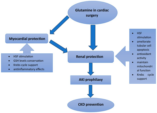 Chicago/Turabian StyleDrăgan, Anca, and Adrian Ştefan Drăgan. 2024. "The Preventive Role of Glutamine Supplementation in Cardiac Surgery-Associated Kidney Injury from Experimental Research to Clinical Practice: A Narrative Review" Medicina 60, no. 5: 761. https://doi.org/10.3390/medicina60050761