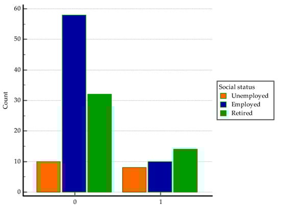 Distribution of cases according to the social status. 0 = SARS-CoV-2 group, 1 = co-infection group.