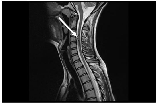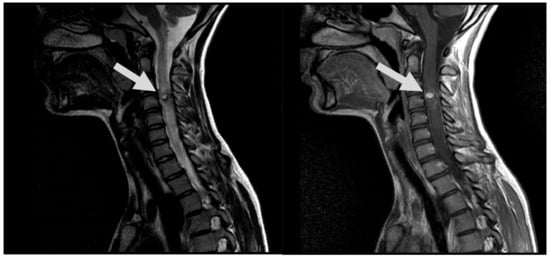 - Tanitame, K. Arteriovenous Malformation of the Cervical Cord Region. Intern. Med. 2020, 59, 3111. [Google Scholar] [CrossRef] [PubMed]