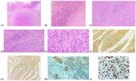 - Zambrano, E.; Reyes-Mugica, M.; Franchi, A.; Rosai, J. An osteoclast-rich tumor of the gastrointestinal tract with features resembling clear cell sarcoma of soft parts: Reports of 6 cases of a GIST simulator. Int. J. Surg. Pathol. 2003, 11, 75–81. [Google Scholar] [CrossRef] [PubMed]