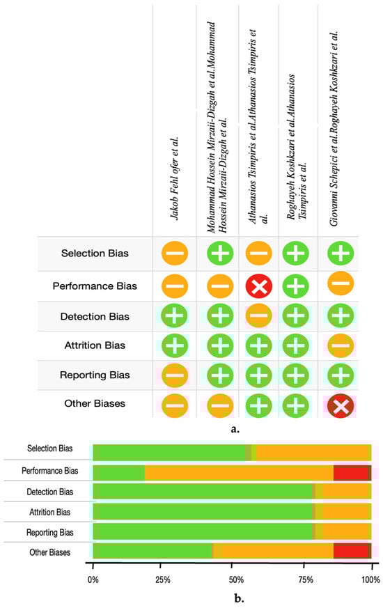 - McGuinness, L.A.; Higgins, J.P.T. Risk-of-bias VISualization (robvis): An R package and Shiny web app for visualizing risk-of-bias assessments. Res. Synth. Methods 2021, 12, 55–61. [Google Scholar] [CrossRef]