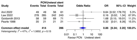Chicago/Turabian StyleMoon, Young Joon, Dae Young Jun, Jae Yong Jeong, Seok Cho, Joo Yong Lee, and Hae Do Jung. 2024. "Percutaneous Nephrostomy versus Ureteral Stent for Severe Urinary Tract Infection with Obstructive Urolithiasis: A Systematic Review and Meta-Analysis" Medicina 60, no. 6: 861. https://doi.org/10.3390/medicina60060861