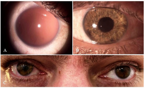 - Gerding, H.; Hailemariam, S.; Timmermann, M. Complications after prosthetic iris implantation in a case of traumatic aniridia. Klin. Monatsblätter Augenheilkd. 2013, 230, 323–325. [Google Scholar] [CrossRef] [PubMed]