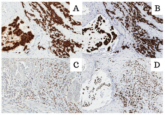 Even though PSA is considered to be a highly specific marker for prostate tissue, its expression was found to be lost in poorly differentiated cells. This may pose an additional diagnostic struggle in differentiating between primary and metastatic disease [16,17,38]. It is worth noting that NKX3.1 may increase PSA sensitivity when applied in combination [39]. However, before NKX3.1 stain was available, it was speculated that SRCC of the prostate could be classified into two types: tumors that react positively to PSA and simultaneously negatively to carcinoembryonic antigen (CEA) and those that do not react to PSA yet express positivity in reaction to CEA [18]. The possibility of the variants has not been disproved and may be highly significant in choosing the most appropriate therapeutic approach.