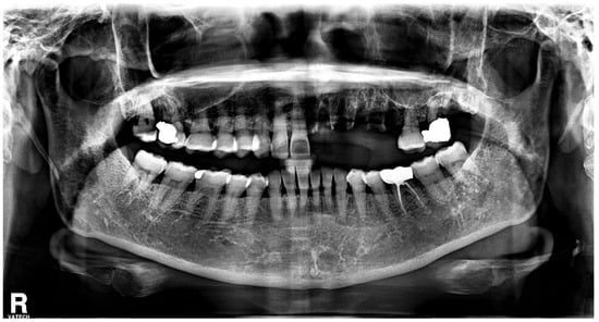 - Cooper, J.C. Tooth exfoliation and osteonecrosis of the jaw following herpes zoster. Br. Dent. J. 1977, 143, 297–300. [Google Scholar] [CrossRef]