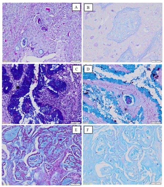 - Spicer, S.S.; Meyer, D.B. Histochemical Differentiation of Acid Mucopolysaccharides By Means of Combined Aldehyde Fuchsin-Alcian Blue Staining. Am. J. Clin. Pathol. 1960, 33, 453–460. [Google Scholar] [CrossRef]