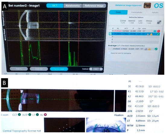 - Yang, C.M.; Lim, D.H.; Kim, H.J.; Chung, T.Y. Comparison of two swept-source optical coherence tomography biometers and a partial coherence interferometer. PLoS ONE 2019, 14, e0223114. [Google Scholar] [CrossRef]