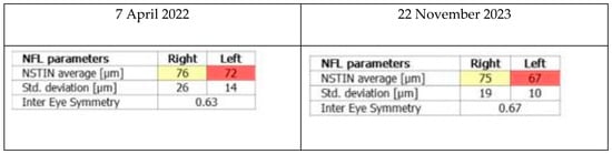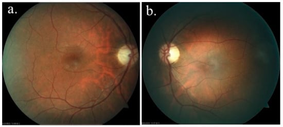 - Zmyslowska, A.; Waszczykowska, A.; Baranska, D.; Stawiski, K.; Borowiec, M.; Jurowski, P.; Fendler, W.; Mlynarski, W. Optical coherence tomography and magnetic resonance imaging visual pathway evaluation in Wolfram syndrome. Dev. Med. Child. Neurol. 2019, 61, 359–365. [Google Scholar] [CrossRef] [PubMed]