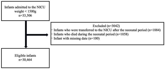 APA StyleOgata, Y., Matsugaki, R., Zaizen, M., Kuhara, S., Muramatsu, K., Matsuda, S., Suga, S., Ito, H., & Saeki, S. (2024). Implementation Rate of Physical Rehabilitation in Neonatal Intensive Care Units in Japan: A Retrospective Observational Study. Medicina, 60(7), 1075. https://doi.org/10.3390/medicina60071075