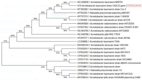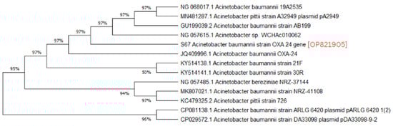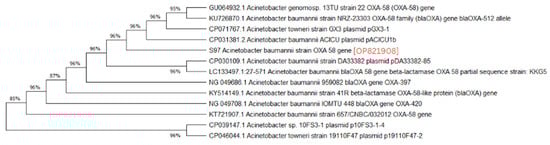 Phylogenetic analysis of blaOXA-58 gene present in study strain 97.