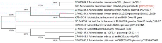 Phylogenetic analysis of blaOXA-58 gene present in study strain 96.