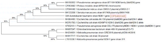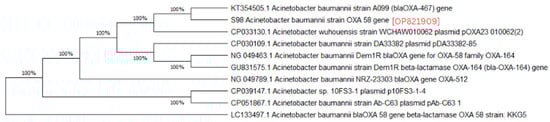 Phylogenetic analysis of blaOXA-58 gene present in study strain 98.