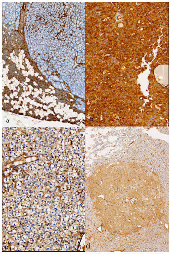 Nevertheless, a trend for oxyphil cells was observed, as oxyphil cells were positive, making it a remarkable observation. Oxyphil cells were positive in 17.7% with mild intensity and cytoplasmic color (Figure 3).