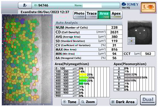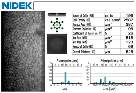 - Chaurasia, S.; Vanathi, M. Specular microscopy in clinical practice. Indian J. Ophthalmol. 2021, 69, 517–524. [Google Scholar] [CrossRef]