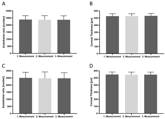 - Karaca, I.; Yilmaz, S.G.; Palamar, M.; Ates, H. Comparison of central corneal thickness and endothelial cell measurements by Scheimpflug camera system and two noncontact specular microscopes. Int. Ophthalmol. 2018, 38, 1601–1609. [Google Scholar] [CrossRef] [PubMed]