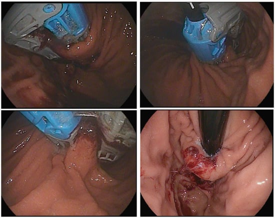 - Schiefke, I.; Neumann, S.; Zabel-Langhennig, A.; Moessner, J.; Caca, K. Use of an endoscopic suturing device (the “ESD”) to treat patients with gastroesophageal reflux disease, after unsuccessful EndoCinch endoluminal gastroplication: Another failure. Endoscopy 2005, 37, 700–705. [Google Scholar] [CrossRef]
