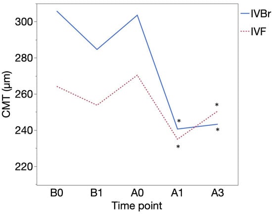 - CMT (μm) as measured with optical coherence tomography (OCT) (DRI OCT Triton, Topcon Inc., Tokyo, Japan) and defined as the distance from the internal limiting membrane to Bruch’s membrane at the fovea. For some cases who were not imaged by DRI OCT Triton, Cirrus high-definition-OCT (HD-OCT, Carl Zeiss Meditec Inc., Tokyo, Japan) was used.