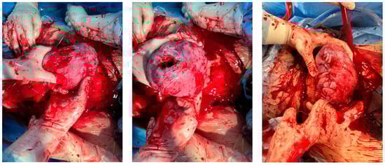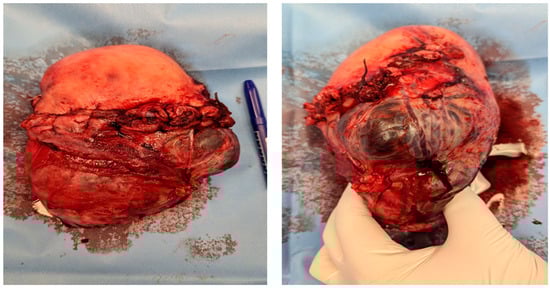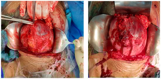 In a conservative approach, only the placenta or affected tissue is removed. This was possible in cases 1, 2, and 3. After surgical removal of the PAS areas, the defect can be reconstructed []. For larger placental adhesions, a generous en bloc resection is advisable []. After removal and hemostasis, a Postpartum Balloon with Rapid Instillation Component scan [] can be used for smaller areas. A wait-and-see approach, leaving the placenta in the cavity after development and separation of the baby, is experimental [] and requires careful monitoring of the patient as it may be associated with high maternal morbidity []. Success depends on the degree of placental adhesion.