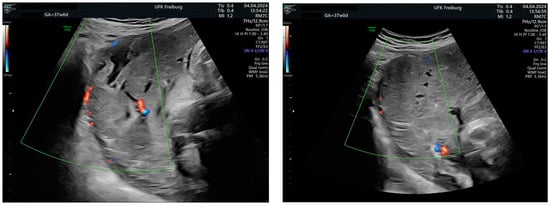 Based on these findings, we planned an elective cesarean section at 35 weeks of gestation, combined with a hysterectomy due to the confirmed placenta increta and the high risk of significant bleeding. These findings were confirmed during the laparotomy.