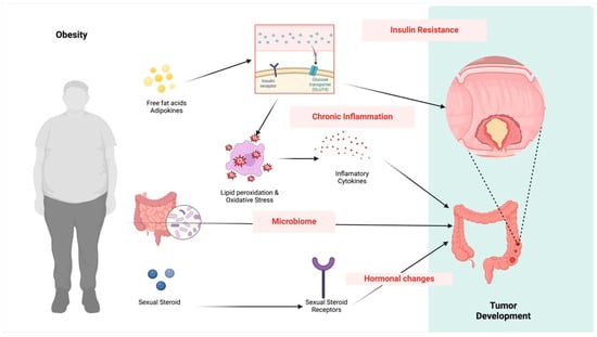 3.4. Mechanisms for the Association between Colorectal Cancer and Obesity