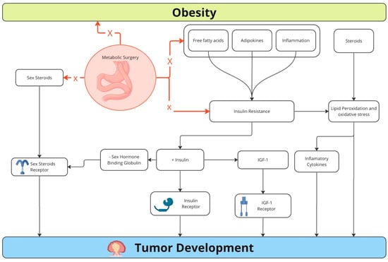 - Ashrafian, H.; Ahmed, K.; Rowland, S.P.; Patel, V.M.; Gooderham, N.J.; Holmes, E.; Darzi, A.; Athanasiou, T. Metabolic surgery and cancer: Protective effects of bariatric procedures. Cancer 2011, 117, 1788–1799. [Google Scholar] [CrossRef] [PubMed]
