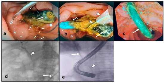 - Dumonceau, J.M.; Tringali, A.; Papanikolaou, I.S.; Blero, D.; Mangiavillano, B.; Schmidt, A.; Vanbiervliet, G.; Costamagna, G.; Devière, J.; García-Cano, J.; et al. Endoscopic biliary stenting: Indications, choice of stents, and results: European Society of Gastrointestinal Endoscopy (ESGE) Clinical Guideline—Updated October. Endoscopy 2018, 50, 910–930. [Google Scholar] [PubMed]