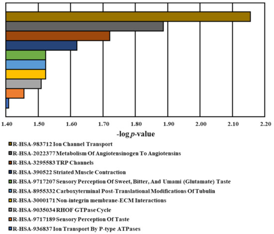 - Jassal, B.; Matthews, L.; Viteri, G.; Gong, C.; Lorente, P.; Fabregat, A.; Sidiropoulos, K.; Cook, J.; Gillespie, M.; Haw, R.; et al. The reactome pathway knowledgebase. Nucleic Acids Res. 2020, 48, D498–D503. [Google Scholar] [CrossRef] [PubMed]