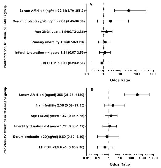 | Predictors | CC-HCG Group (n = 138) | CC-Placebo Group (n = 131) | ||||