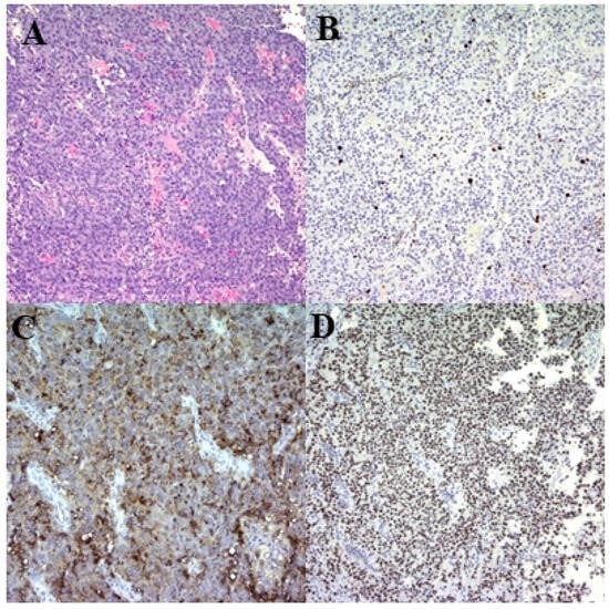 - Burger, P.C.; Shibata, T.; Kleihues, P. The use of the monoclonal antibody Ki-67 in the identification of proliferating cells: Application to surgical neuropathology. Am. J. Surg. Pathol. 1986, 10, 611–617. [Google Scholar] [CrossRef]